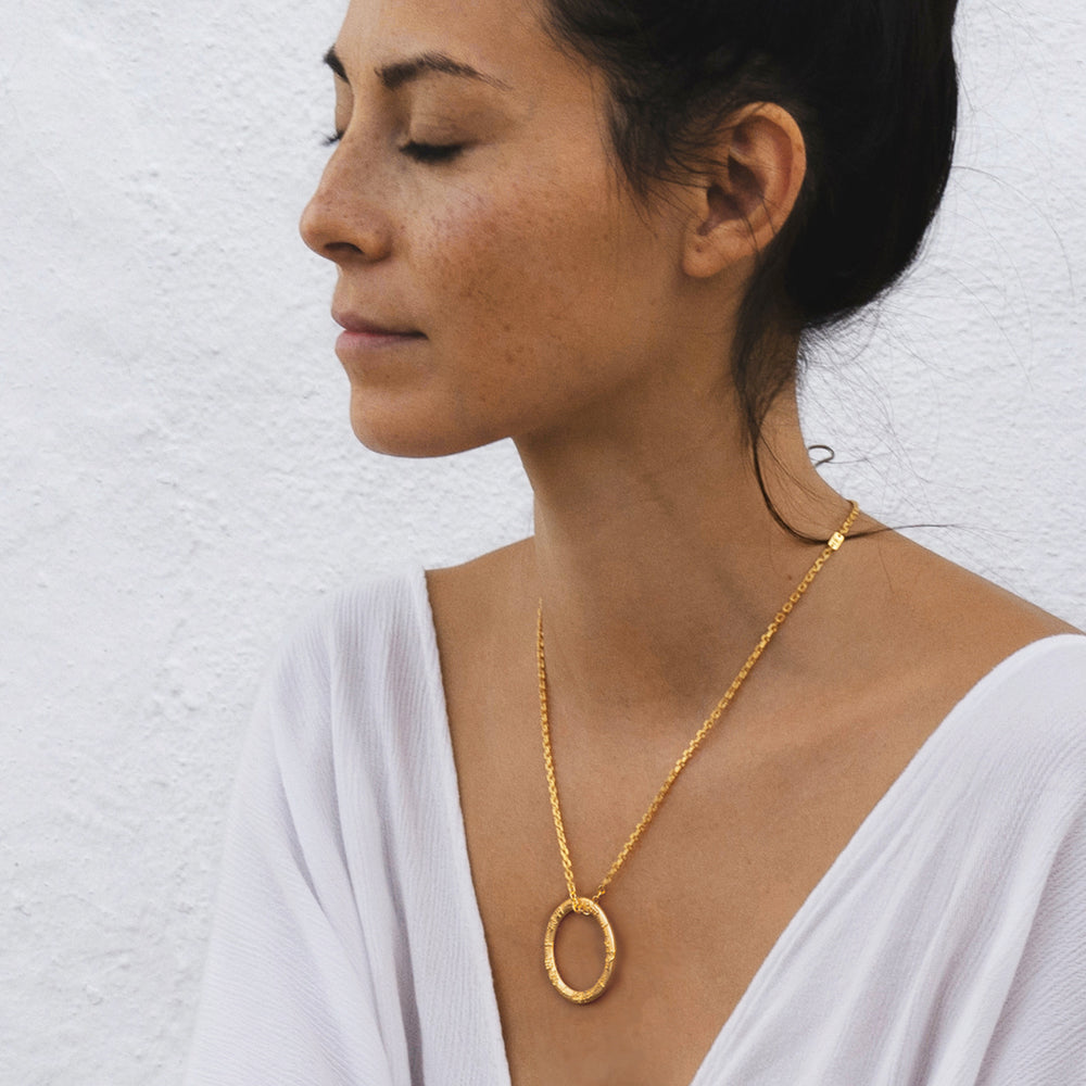 Bei der Gestaltung unseres Yantra-Schmucks haben wir die traditionellen Darstellungen dieser tiefsinnigen, wirksamen Formen zu Grunde gelegt. Eines ihrer auffälligsten Merkmale ist die exakte, symmetrische Gestaltung, die dazu dienen soll, die rechte und linke Gehirnhälfte in Balance zu bringen. Unter Berücksichtigung der vorgegebenen Proportionen und unter Verwendung hochwertigster Materialien, kreierten wir zu zwei göttlichen Prinzipien spirituelle Anhänger: Sri Yantra und Kali Yantra, die wohl bekanntesten Yantras in der Yoga- Philosophie. Natürlich haben wir unterschiedliche Yantra Schmuck Serien designt, um eine Auswahl dieser spirituellen Ketten zur Verfügung zu stellen, denn das richtige Schmuckstück findet dich.